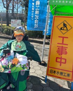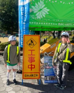 安全チョッキやヘルメットを着用して、現場監督になりきって記念撮影を楽しんでいただきました!