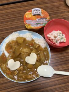 お昼ごはんは、カレーライス・ポテトサラダ・ゼリー!