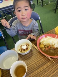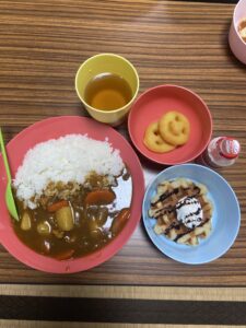 🍴 昼食はカレーライス🍛、スマイルポテト☺、ワッフル、ヤクルト🥛😋でした☆