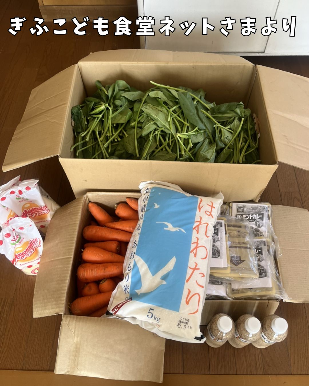 ぎふこども食堂ネット様より、にんじんやほうれん草、お米、マヨネーズやドレッシング、レトルトカレーなどたくさんの物を頂きました。 10月のみずいろ食堂で使用したり、配布したりさせて頂ききました。 いつもありがとうございます!